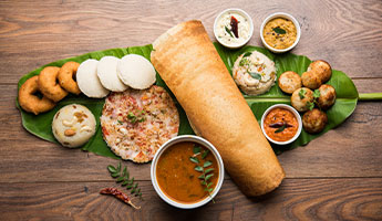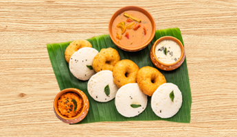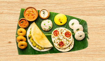 Fruit Juice, Idly, Vada/ M/S Vada ,Assorted Utappam, Pongal/Poha,Peanut/Coconut Chutney & Ginger Chutney,Sambar,Tea/Coffee